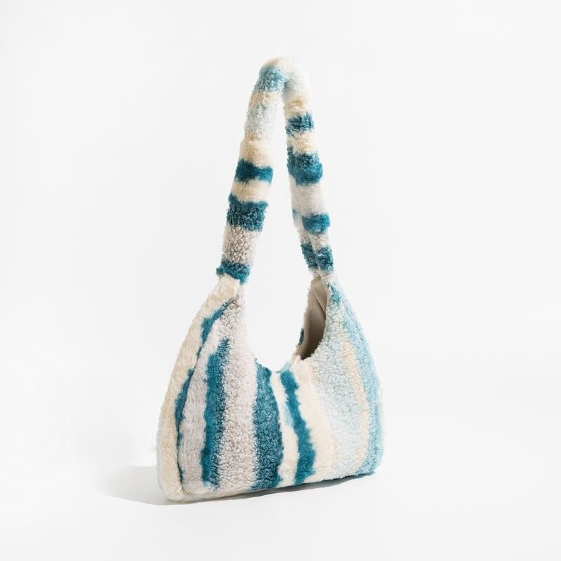 Trendy Striped Faux Fur Underarm Hobo Bag