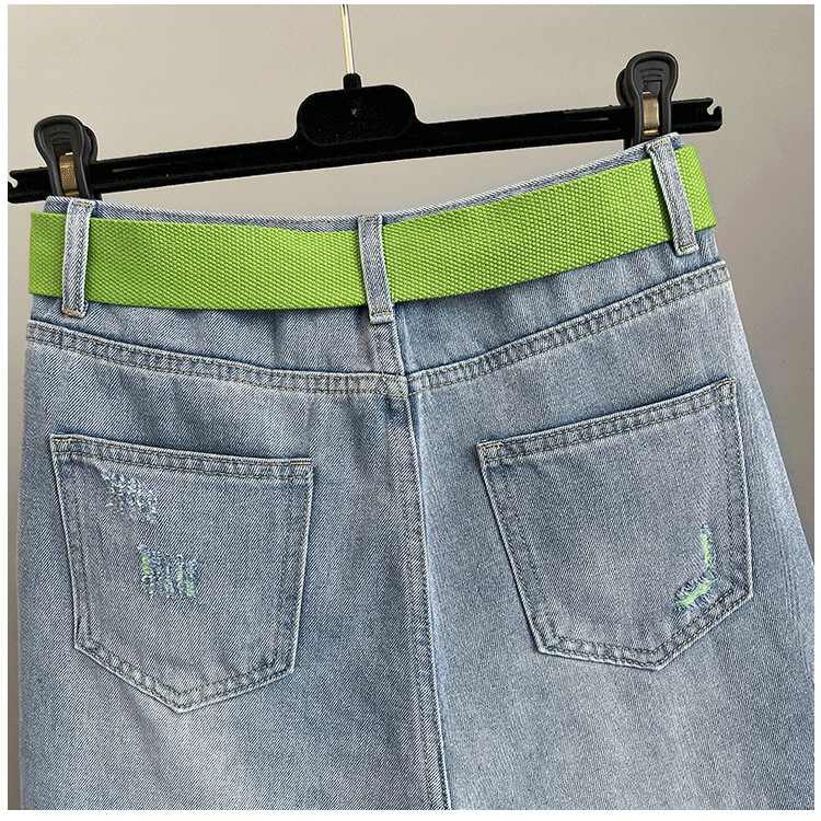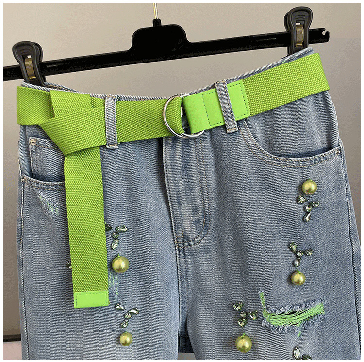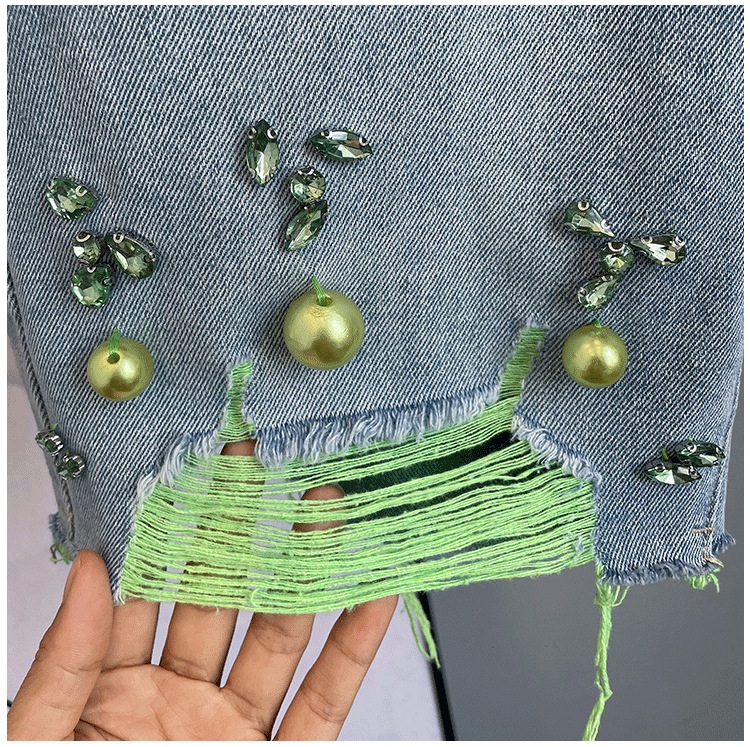 European and American style summer new grind hole jeans trousers feet high waist pants - Trendha