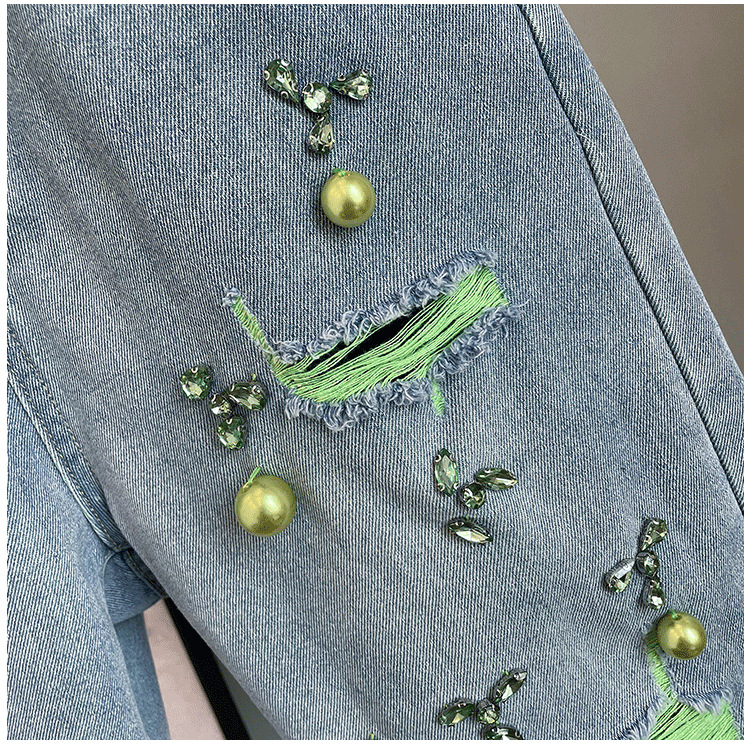 Jeans Women's Jeans Beaded Fashion Jeans Breasted Straight Jeans - Trendha