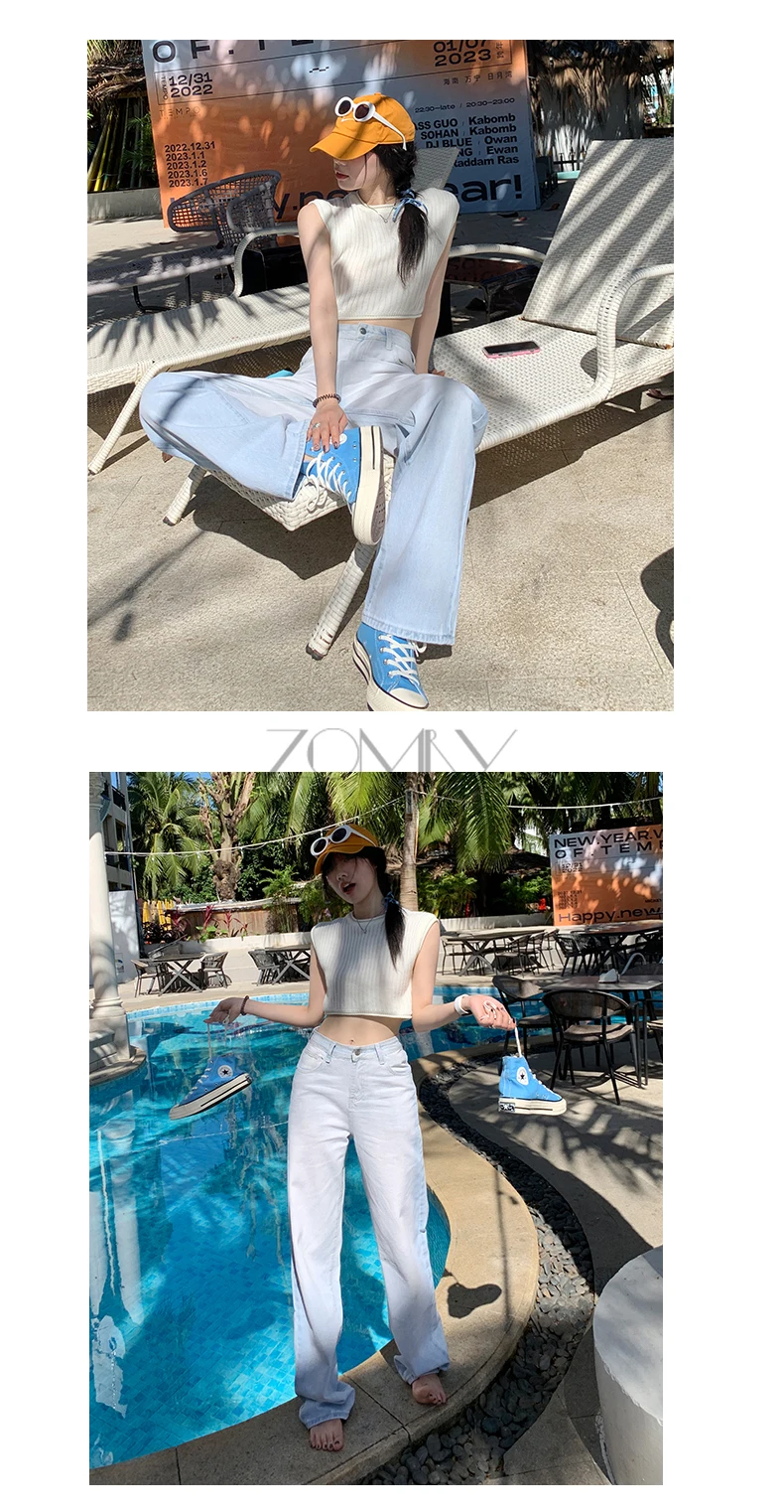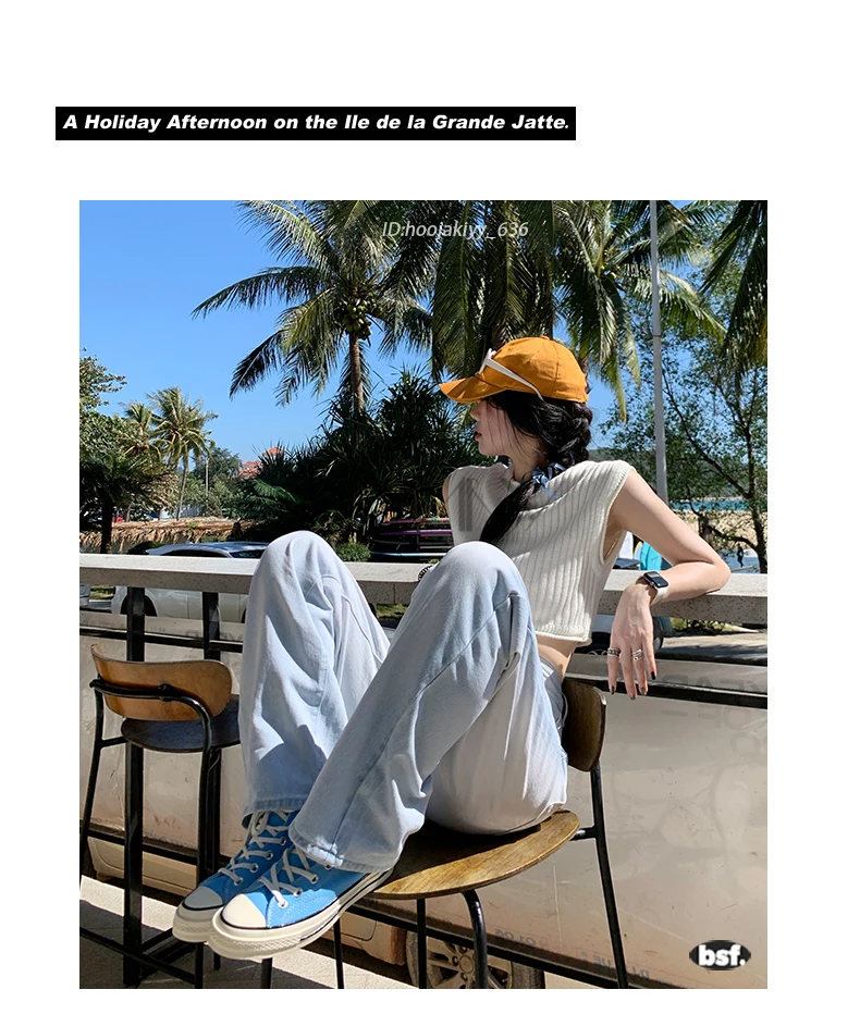 European and American style summer new grind hole jeans trousers feet high waist pants - Trendha