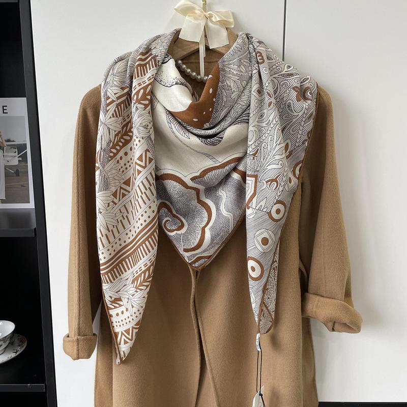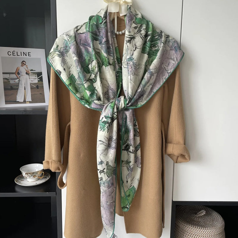 Luxury Silk Wool Pashmina Scarf - Elegant Natural Print