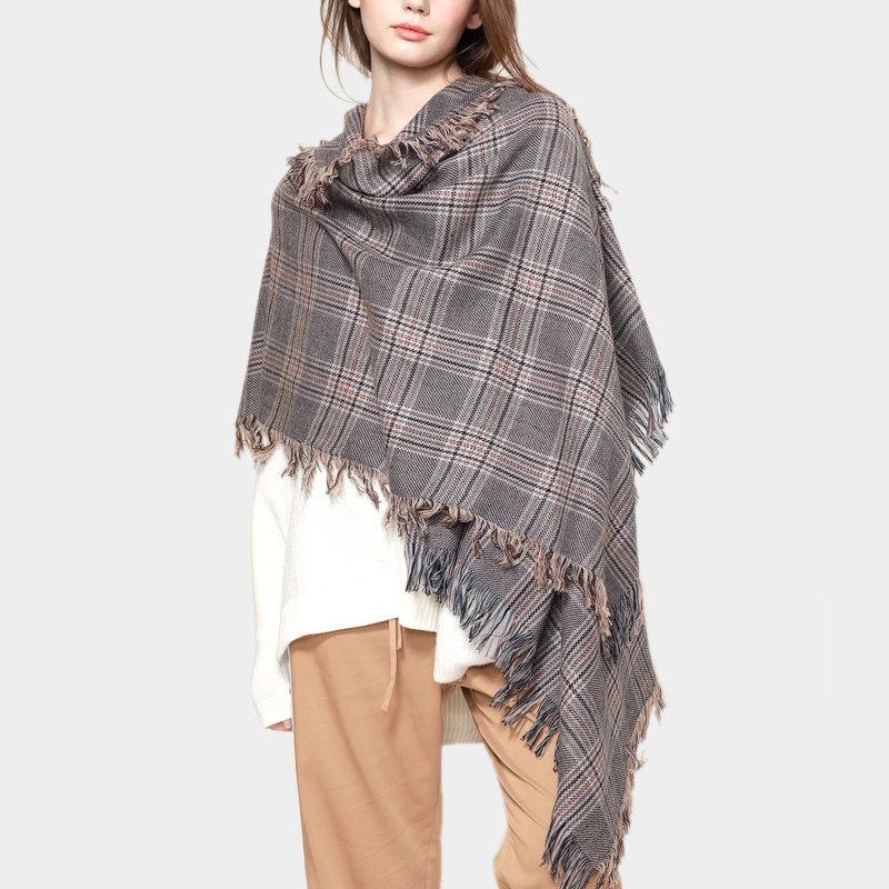 Elegant Plaid Cashmere Shawl - Long Warm Tassel Wrap