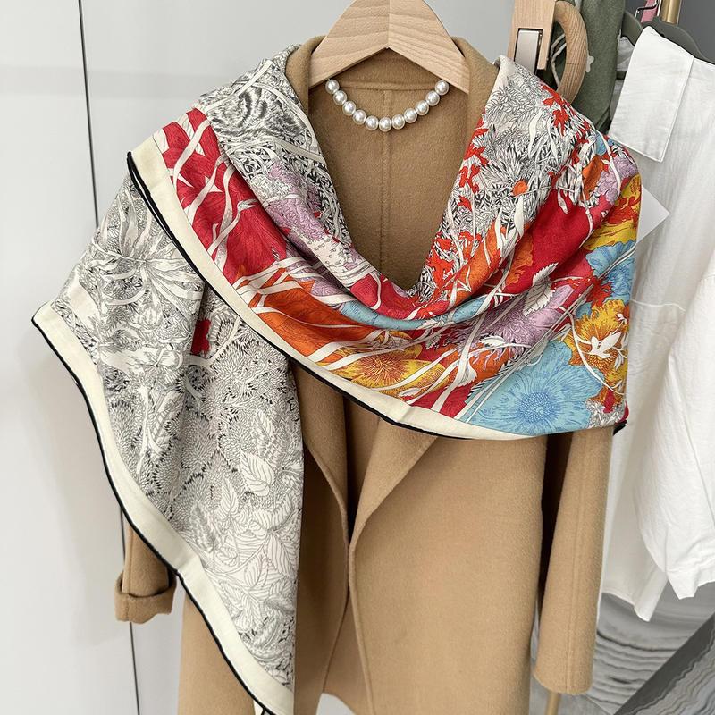 Silk Cashmere Pashmina Scarf - Elegant Print Shawl
