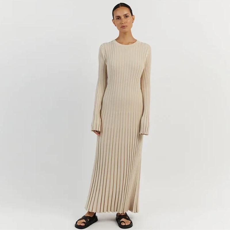 Our dress is crafted with high-quality synthetic fibers, offering both durability and breathability. The pullover design makes it easy to wear, while the O-neck and natural waistline accentuate your figure gracefully. The full sleeves and ankle-length cut provide a sophisticated and modest look, suitable for various occasions. Plus, the slight stretch in the fabric ensures a flattering, slim fit.Why Choose Our Knit Dress?