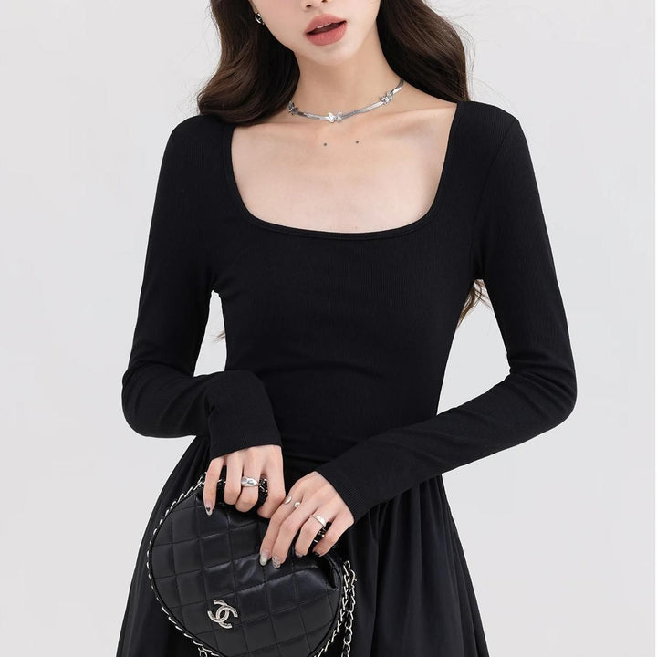 Elegant Square Neck Casual Dress
