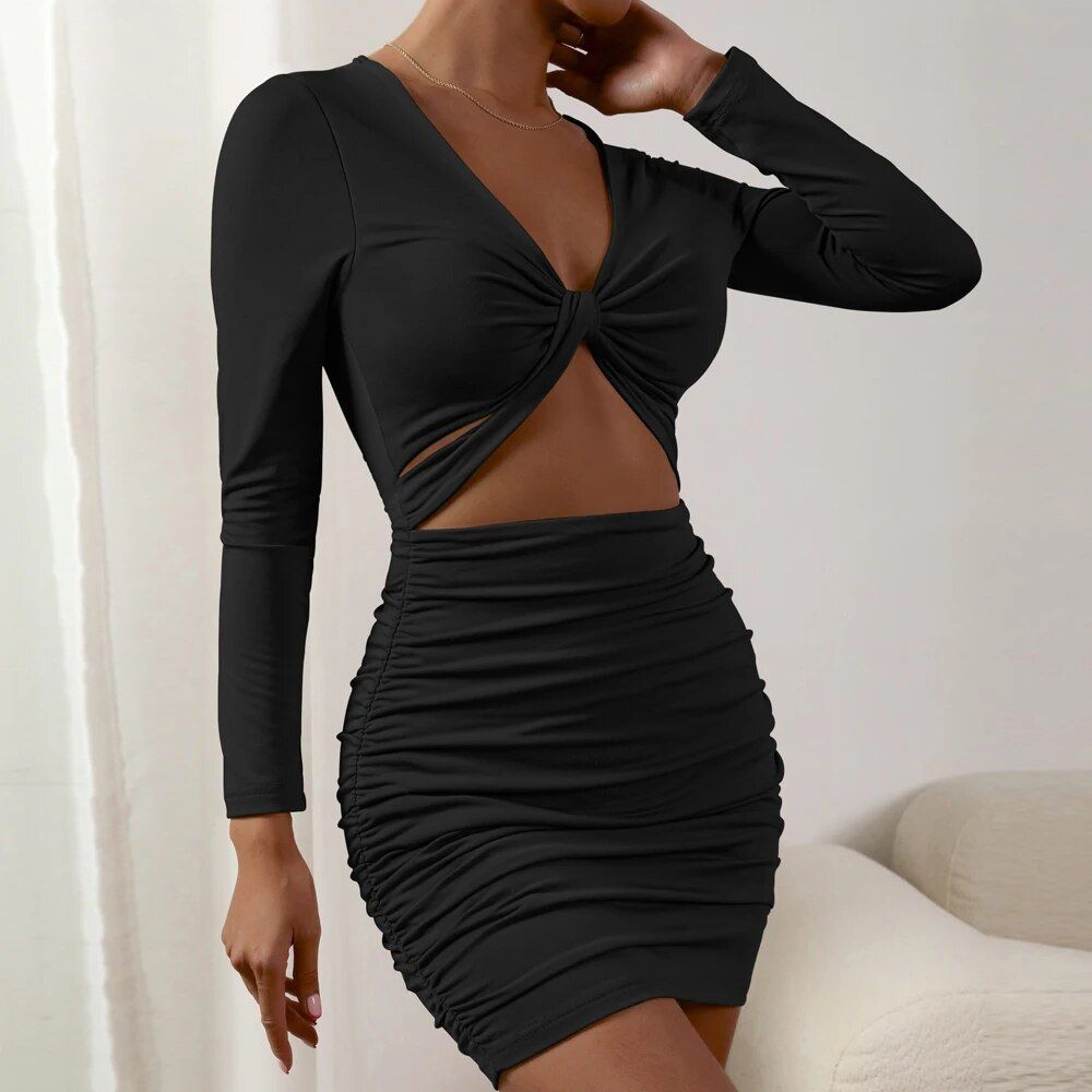 Step into the spotlight with our Fantasy Elegance: Autumn Ruffle Bodycon Mini Dress. This captivating piece is designed to make you stand out at every evening occasion. Crafted with precision and style, this dress is your ticket to a night of glamour and allure.Key Features