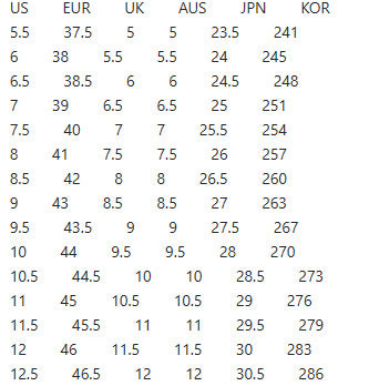 | SIZE | 38-39 | 40-41 | 42-43 | 44-45 |