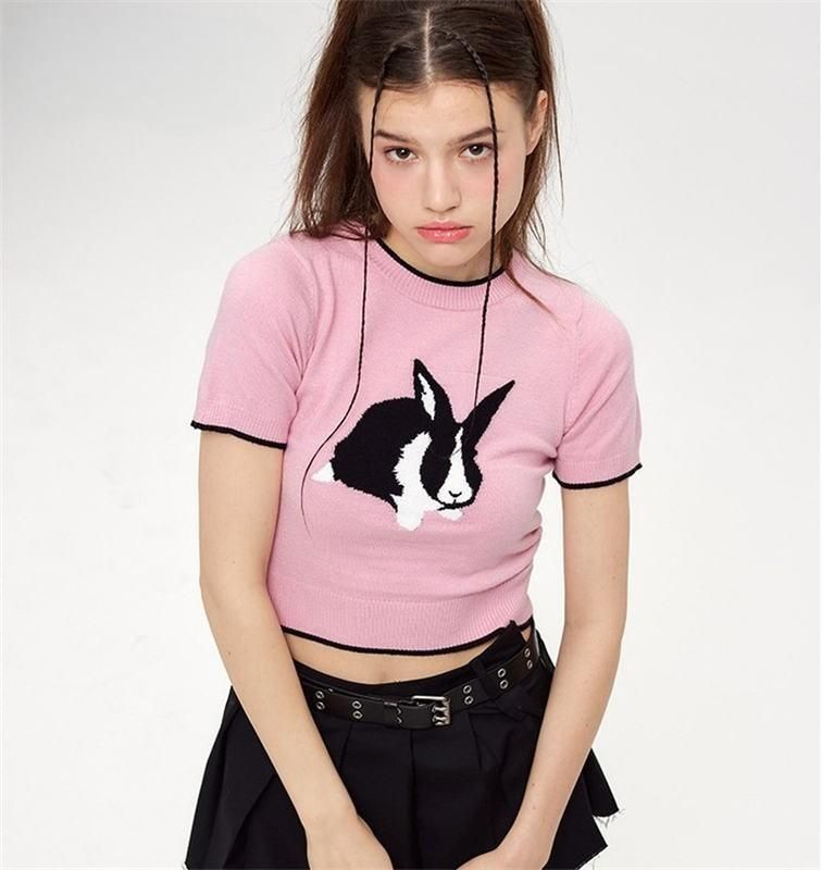 Charming Rabbit Cartoon Short Sleeve Knitted T-shirt