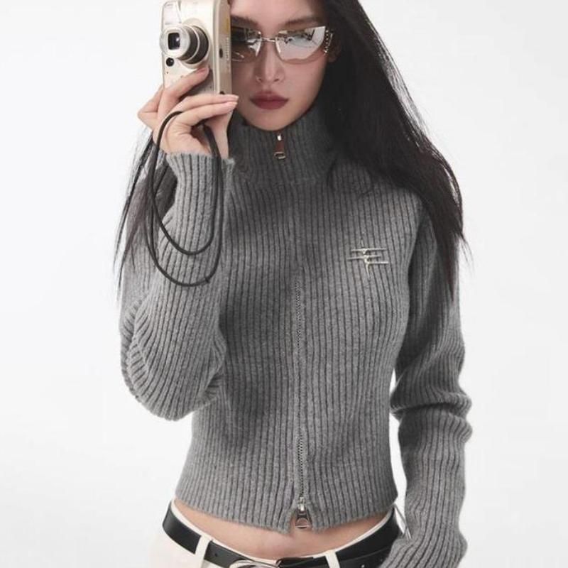 Y2K Gyaru Grey Zipper Cardigan
