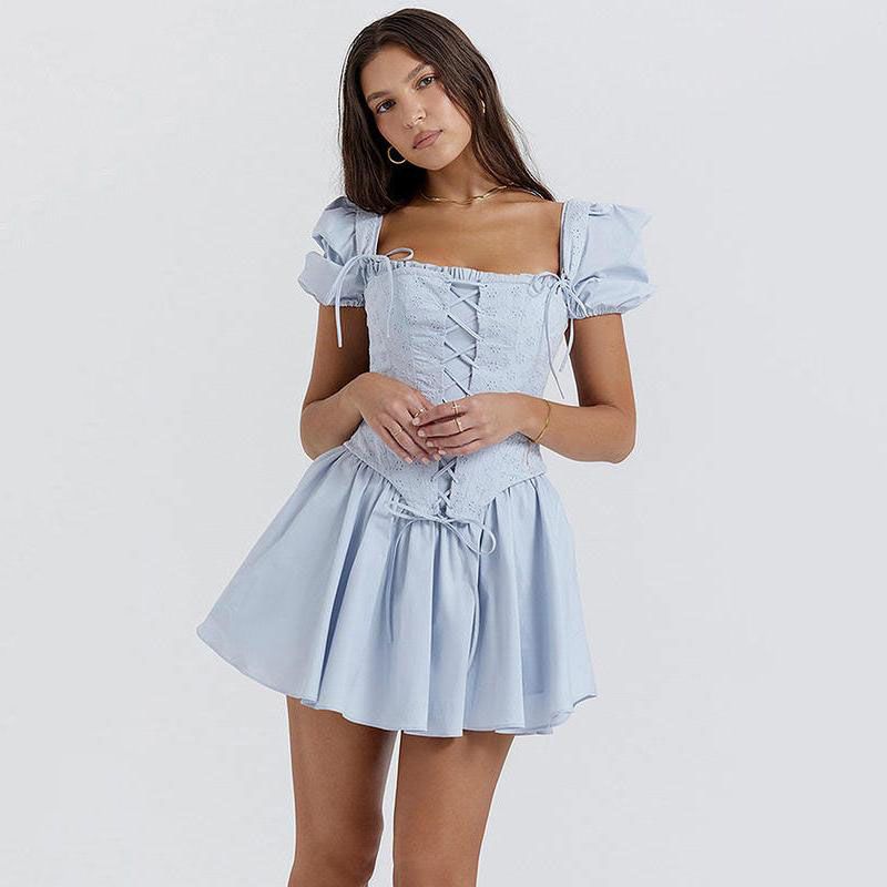 Elegant Puff Sleeve Square Collar Mini Dress