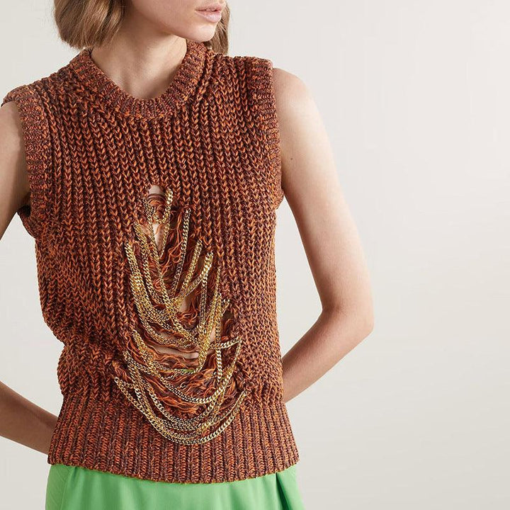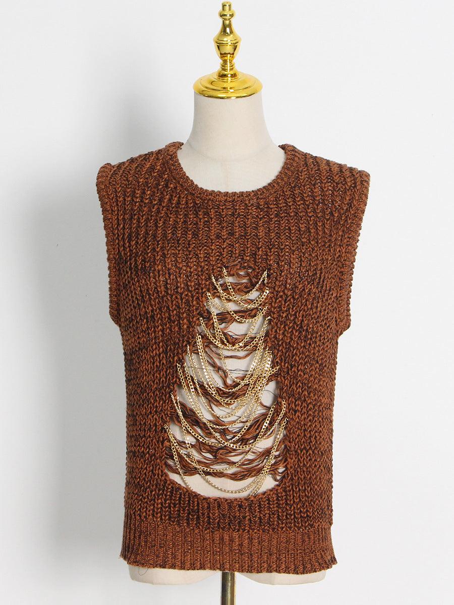 Women's Fashion Solid Color Patchwork Knitting Vest