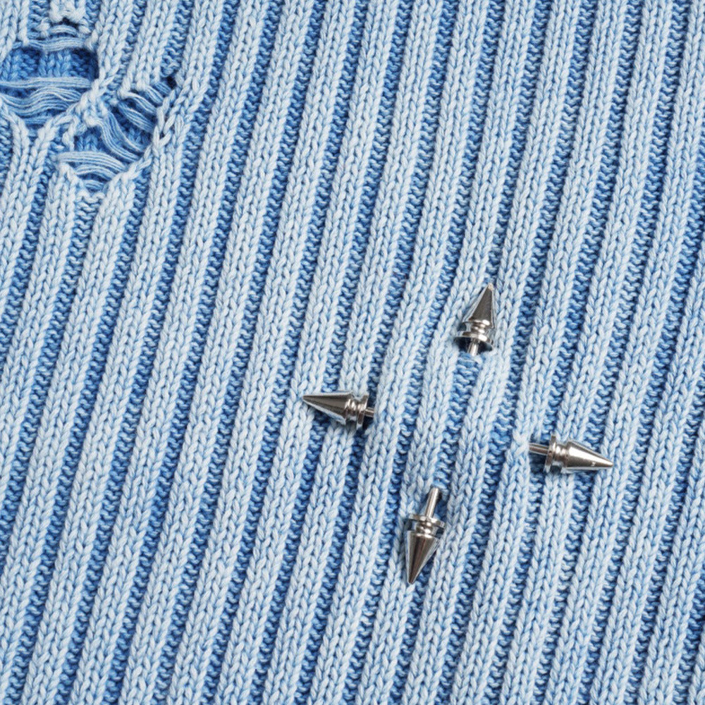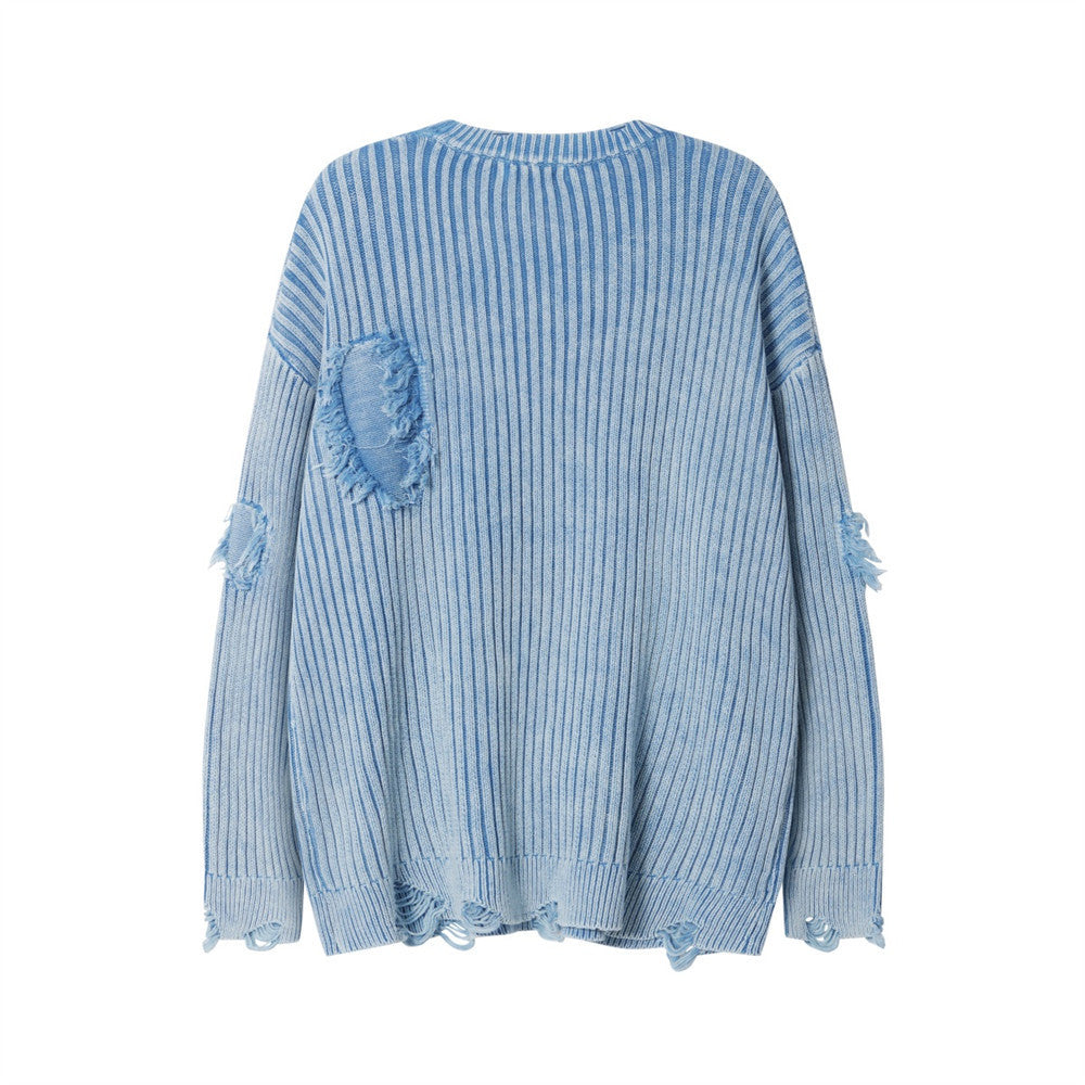 Idle Style Sunken Stripe Make Old Ripped Round Neck Sweater