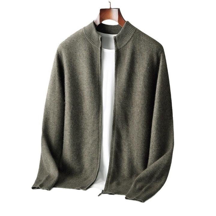 Pure Wool Knit Double-strand Thickening Stand Collar Cashmere Cardigan