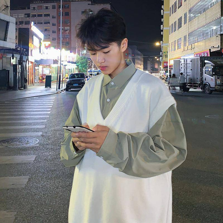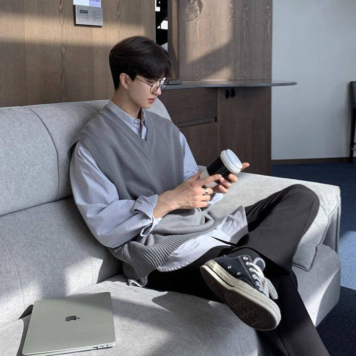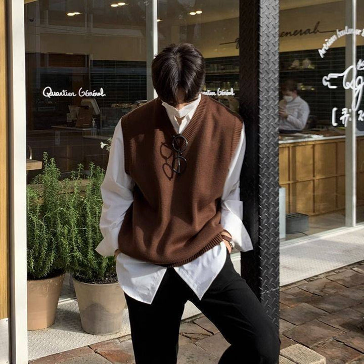 Men's V-neck Sweater Plus Size Vest Knitted Autumn And Winter College Style Waistcoat Vest Coat