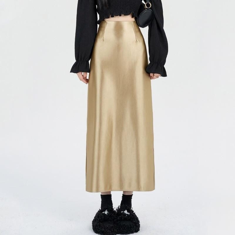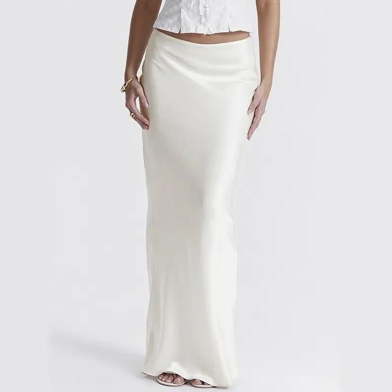 Elegant High Waist Satin Maxi Skirt for Women
