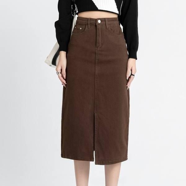 Classic High Waist Straight Denim Skirt