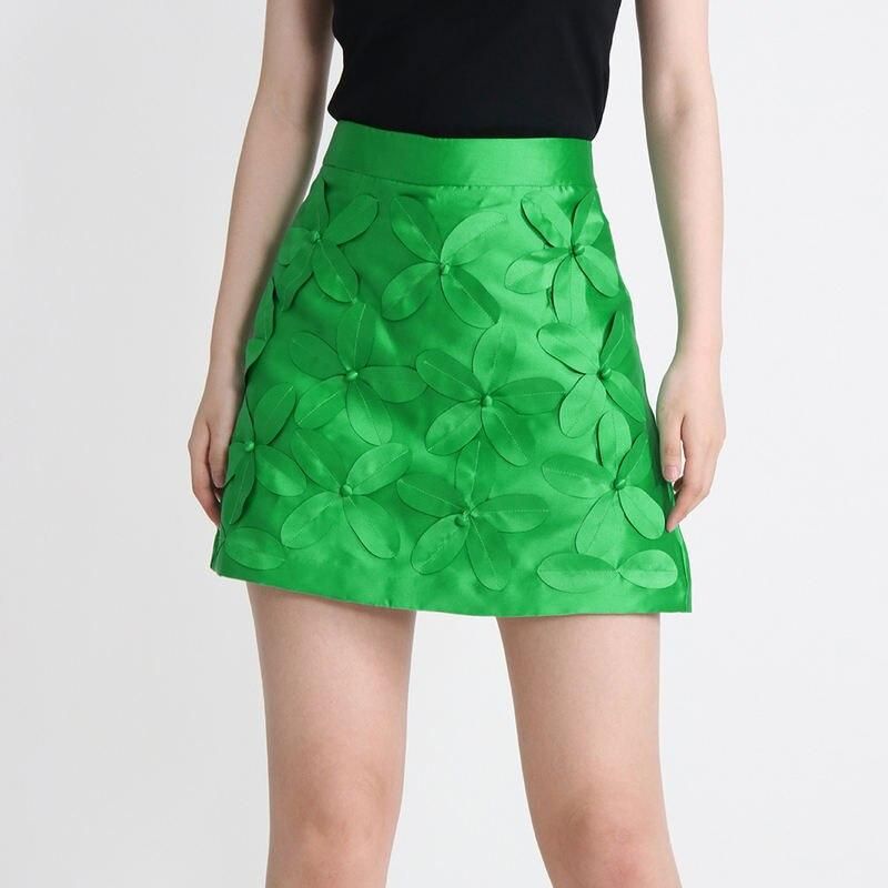 Elegant Floral Silk A-Line Skirt