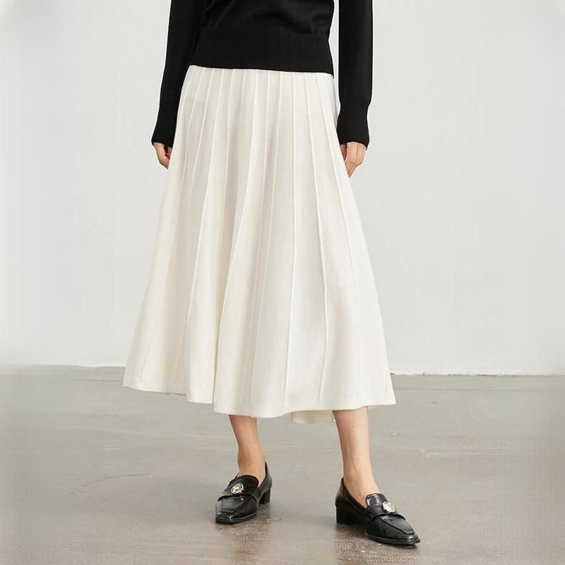 Elegant Mid-Calf Pleated Wool Skirt