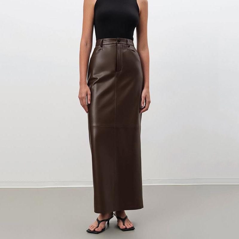 Elegant Ankle-Length Faux Leather Skirt for Women