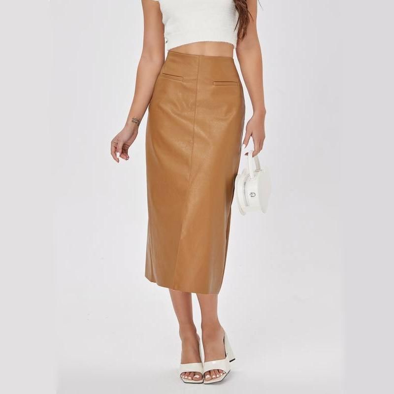 Elegant High-Waist Faux Leather Straight Skirt