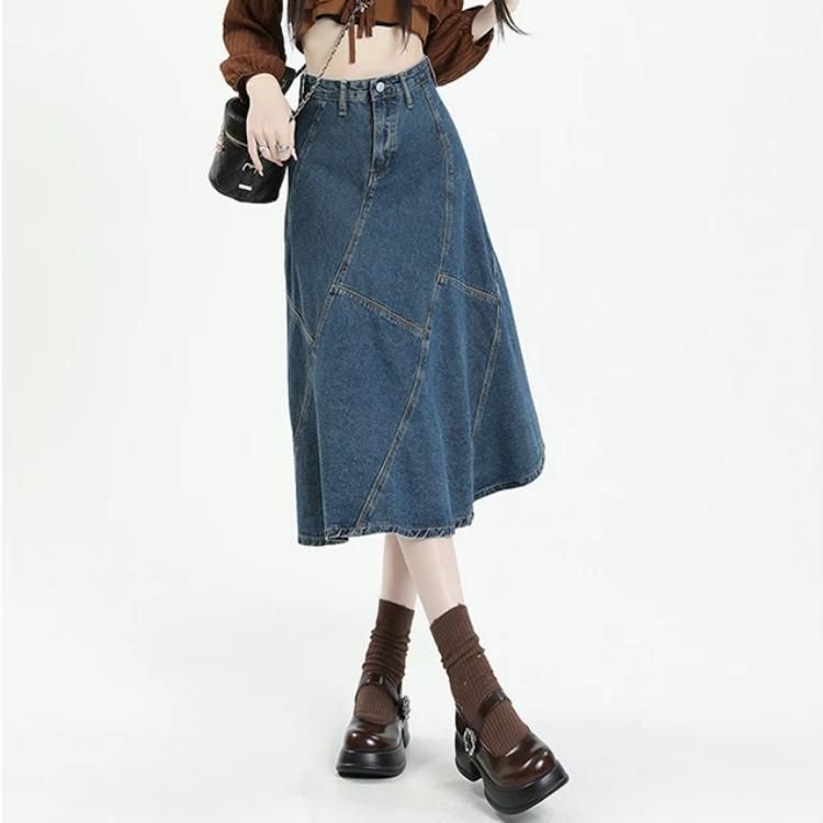 Classic Blue A-Line Midi Denim Skirt