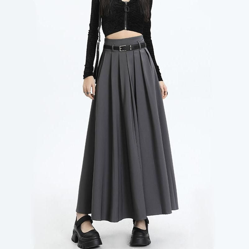 Elegant High Waist Pleated Maxi Skirt for Women