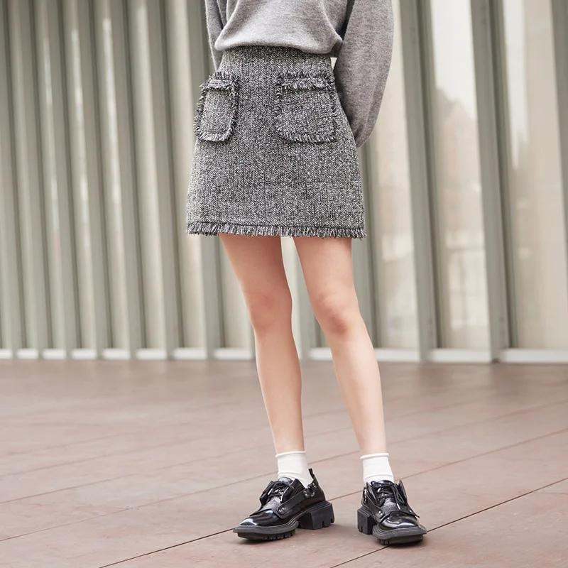 Autumn Winter Casual Denim A-Line Skirt with Pockets