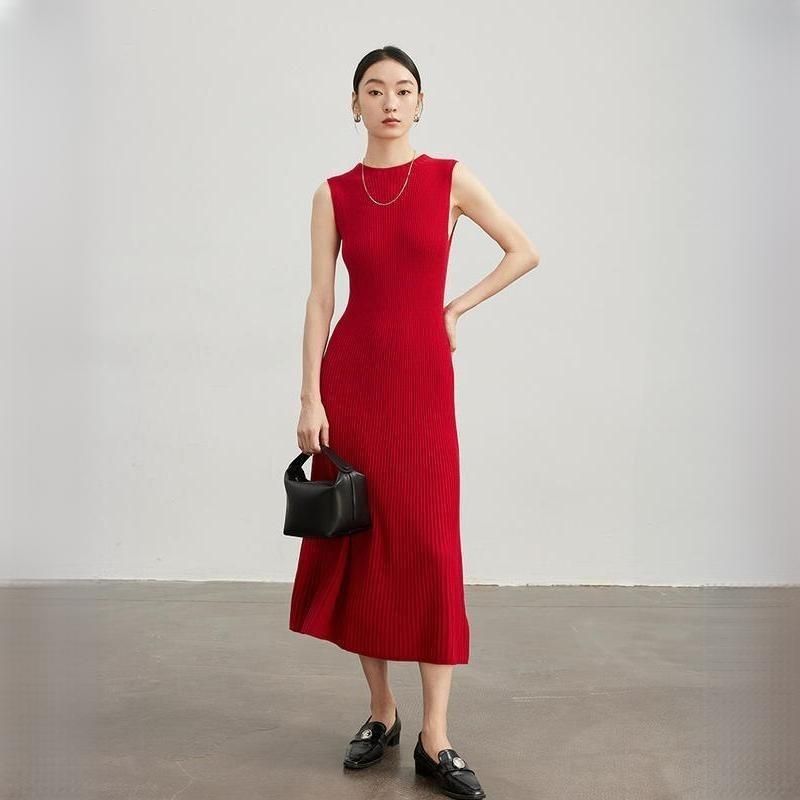 Elegant Sleeveless Wool Blend Mid-Calf Dress