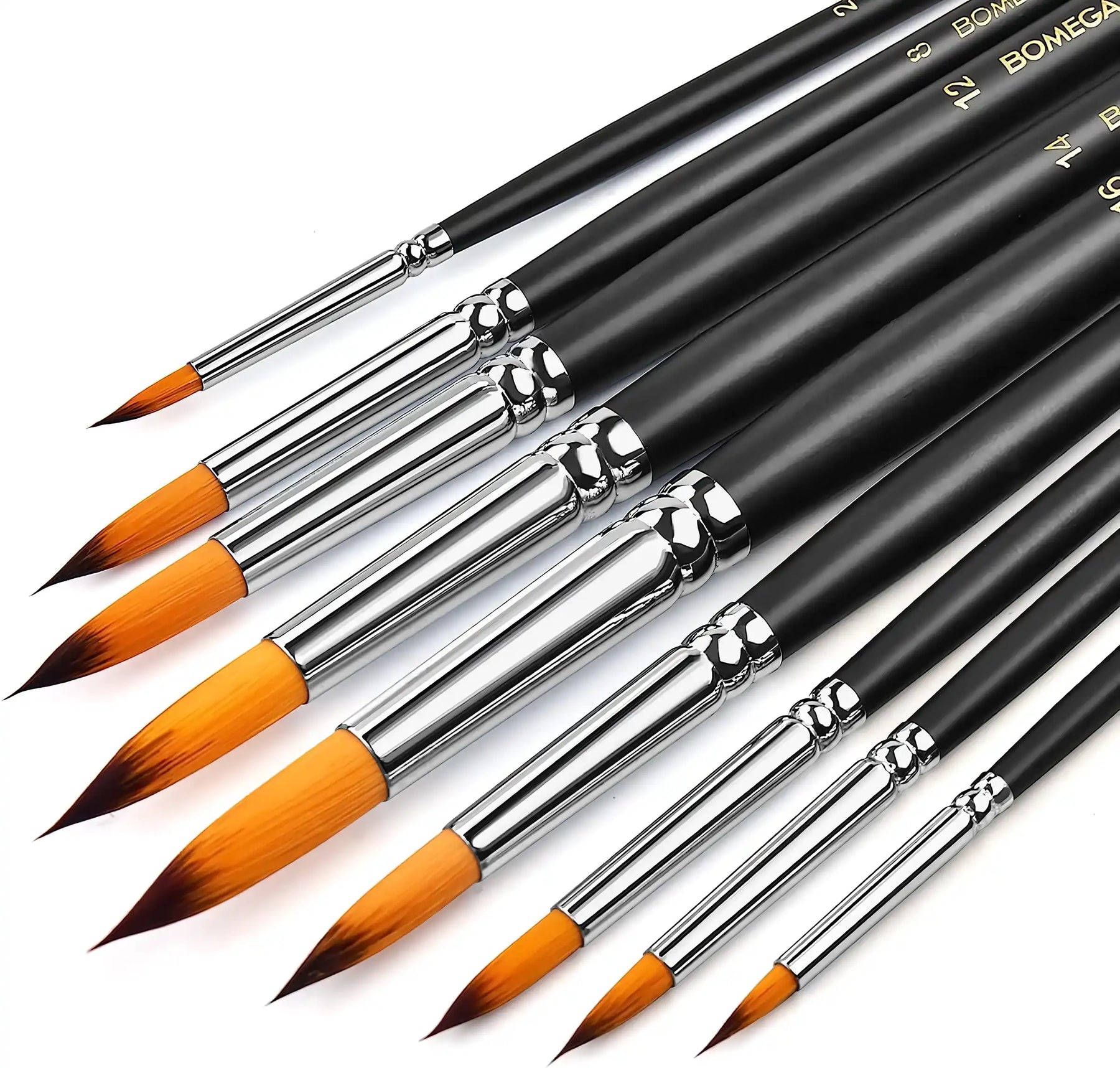 Our brushes are crafted using Japan-imported nylon bristles, known for their durability and exceptional ability to hold and distribute paint evenly. Unlike other brushes, these are designed to resist deformation and hair loss, even after extensive use. The nickel-plated copper ferrules ensure a secure fit, preventing wobbling or shedding, while the black wooden handles provide a comfortable grip that feels balanced and natural in your hand. These brushes are ideal for use with watercolor, acrylic, oil, gouache, and even face painting, making them an essential addition to any artist's toolkit.Why Choose These Watercolor Paint Brushes?