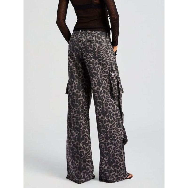 The trousers boast an array of features that make them stand out. The high waist design ensures a flattering fit, accentuating your silhouette. The leopard print adds a touch of wild sophistication, making a statement wherever you go. Crafted from a blend of cotton and polyester, these pants offer both durability and comfort. The pockets aren't just practical; they add an element of chic functionality to the design. And with the button fly closure, you're assured a secure and stylish fit every time.