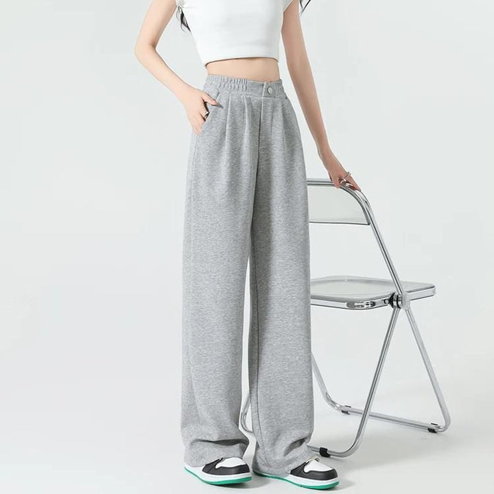 What sets these pants apart is their unique combination of fashion-forward design and practical features. The high waist and wide-leg style are not just trendy but also offer unparalleled comfort and freedom of movement. The solid color and elegant details like buttons and pockets add a touch of sophistication, making them more than just ordinary sweatpants. Crafted with a focus on quality and durability, they are designed to be a staple in your wardrobe for seasons to come.