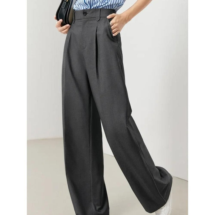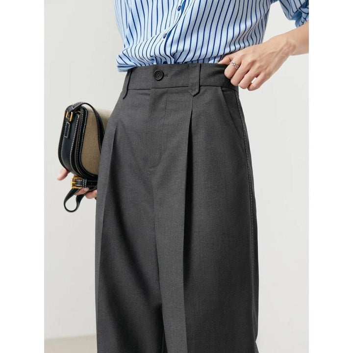 Step into a world of elegance and comfort with our Elegant High-Waist Wide-Leg Trousers for Women. Designed for the modern woman, these gray suit pants are a perfect blend of style and functionality. Whether you're heading to the office or stepping out for a casual evening, these trousers are your go-to choice for every occasion. The high-waisted design not only offers a flattering silhouette but also ensures maximum comfort throughout the day.