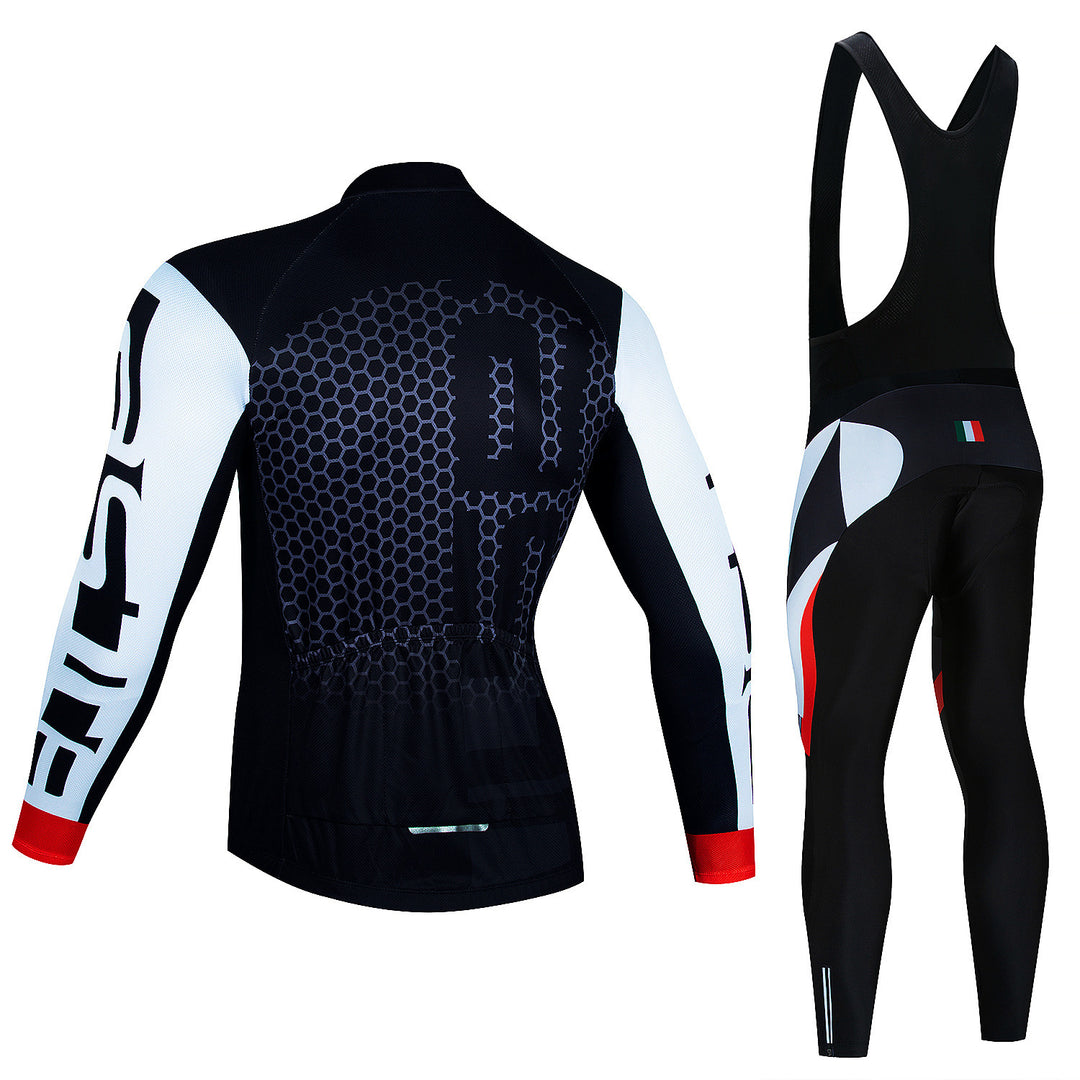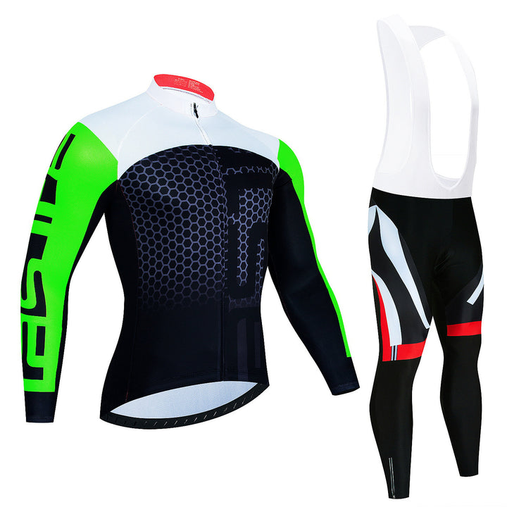 Men's Riding Jersey Long Sleeve Top And Trousers Wicking Breathable Cycling Suspender Suit
