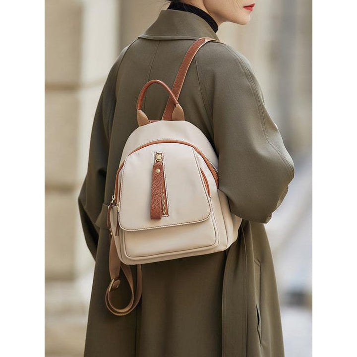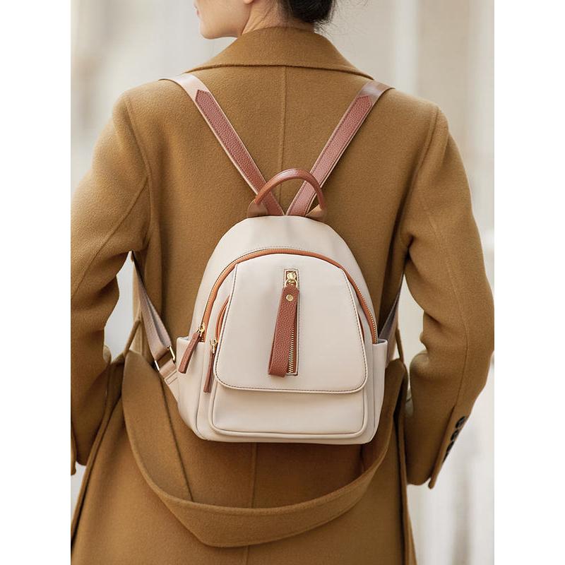 Introducing the Women's Oxford Material Backpack, a perfect companion for schoolgirls, urban commuters, and travel enthusiasts alike. Crafted from high-quality Oxford material combined with cow leather accents, this backpack is designed to be both durable and stylish. With its sleek design and practical features, it’s an ideal choice for those who value both form and function.