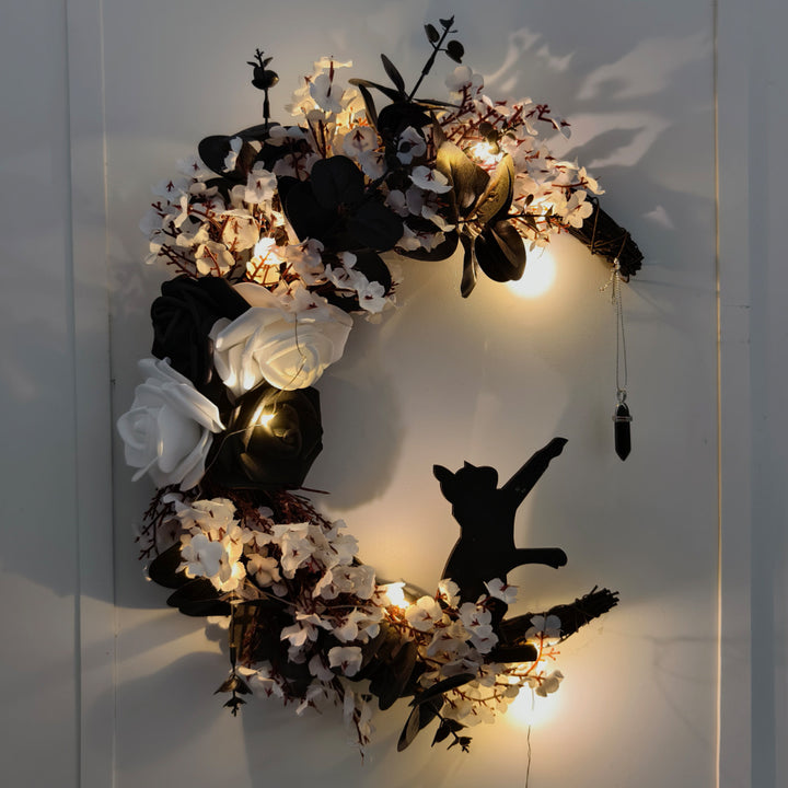 Color: white flower black rose dried wood moon cat Garland