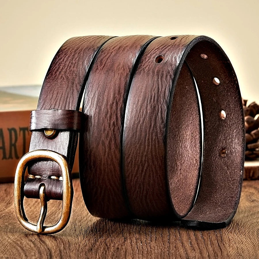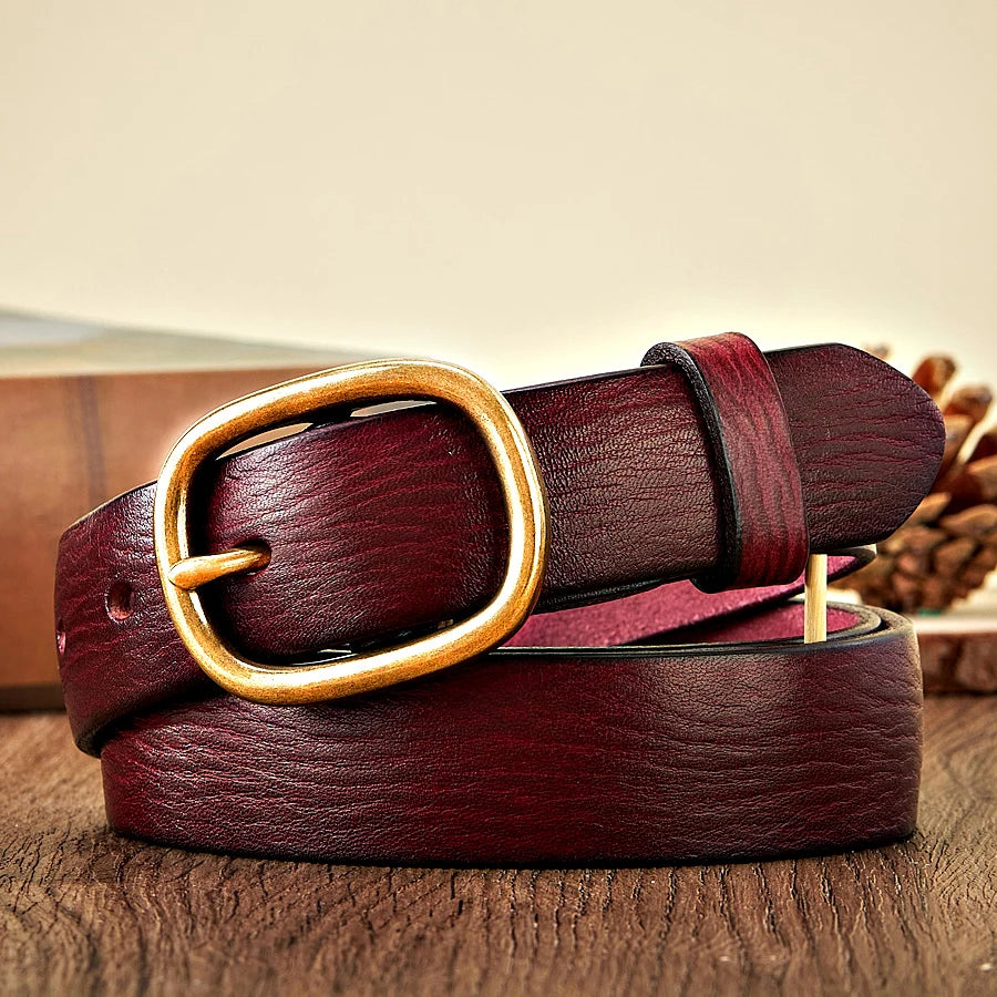 2.8CM Women’s Genuine Cowhide Leather Belt with Copper Buckle
