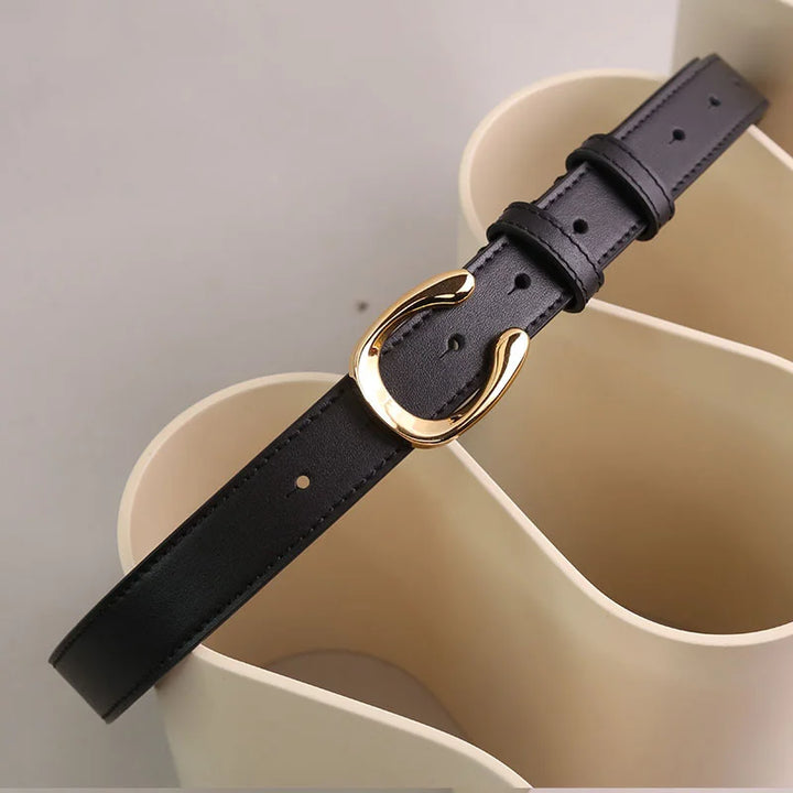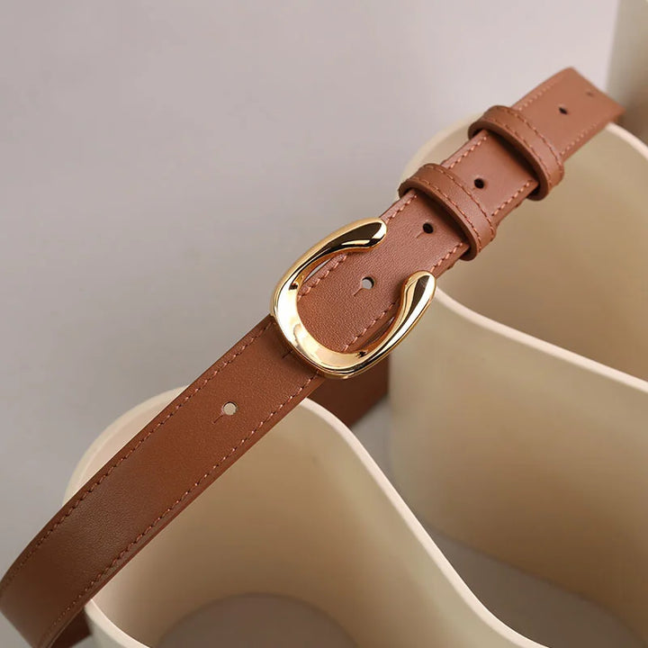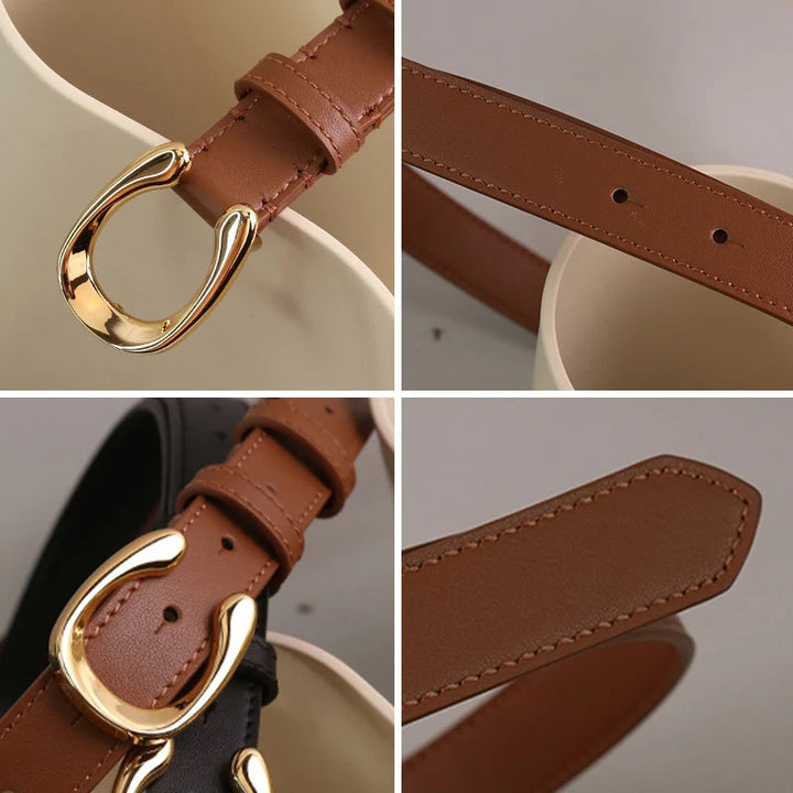 Women's Genuine Cow Leather Belt with Irregular Buckle – Handmade Classic Waist Accessory