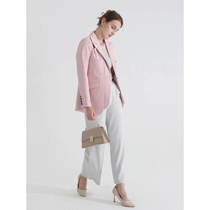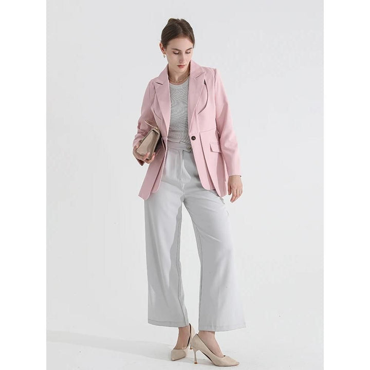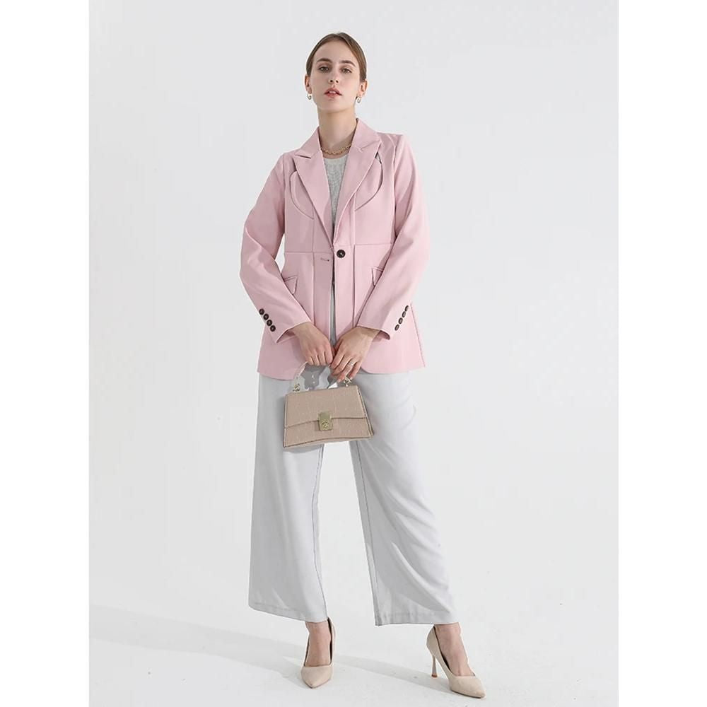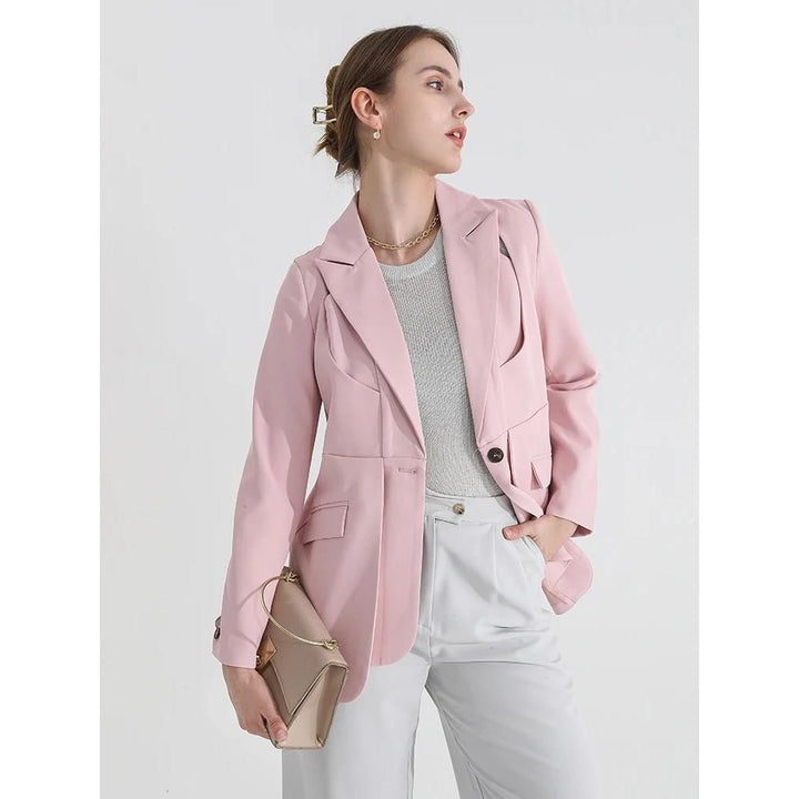 Women's Solid Color Blazer with Notched Collar and Unique Folds