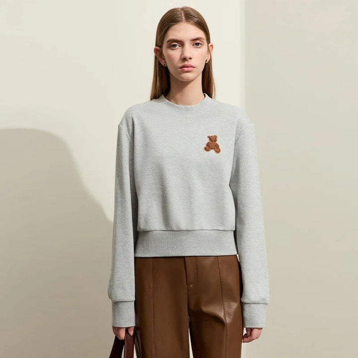 What sets this hoodie apart is its adorable bear applique embroidery, adding a touch of playfulness and uniqueness to your outfit. Crafted with a blend of high-quality cotton and polyester, it offers both durability and softness. The straight, regular-fit design flatters any body type, while the drop sleeves add a trendy twist to the classic pullover style.Product Features