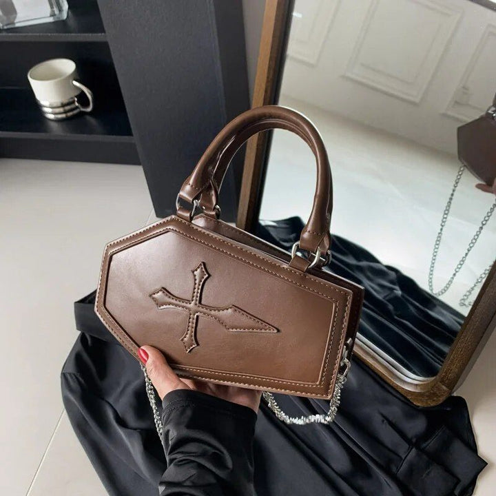 Step into a world where vintage goth meets modern fashion with our Y2K Gothic Coffin Handbag. Crafted for the bold and the beautiful, this handbag is a perfect blend of edgy design and practical functionality. Whether you're stepping out for a night in the city or adding a touch of uniqueness to your daily attire, this accessory is your go-to fashion statement.
