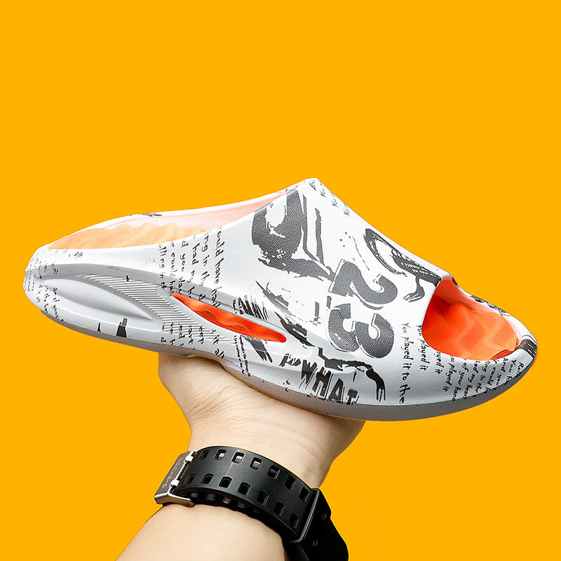Cool Graffiti Printed Flip Flops For Men Summer New Non-slip Slippers Seaside Casual Beach Shoes