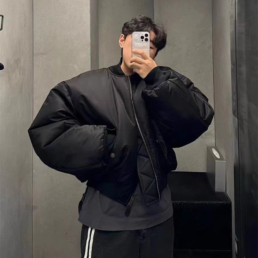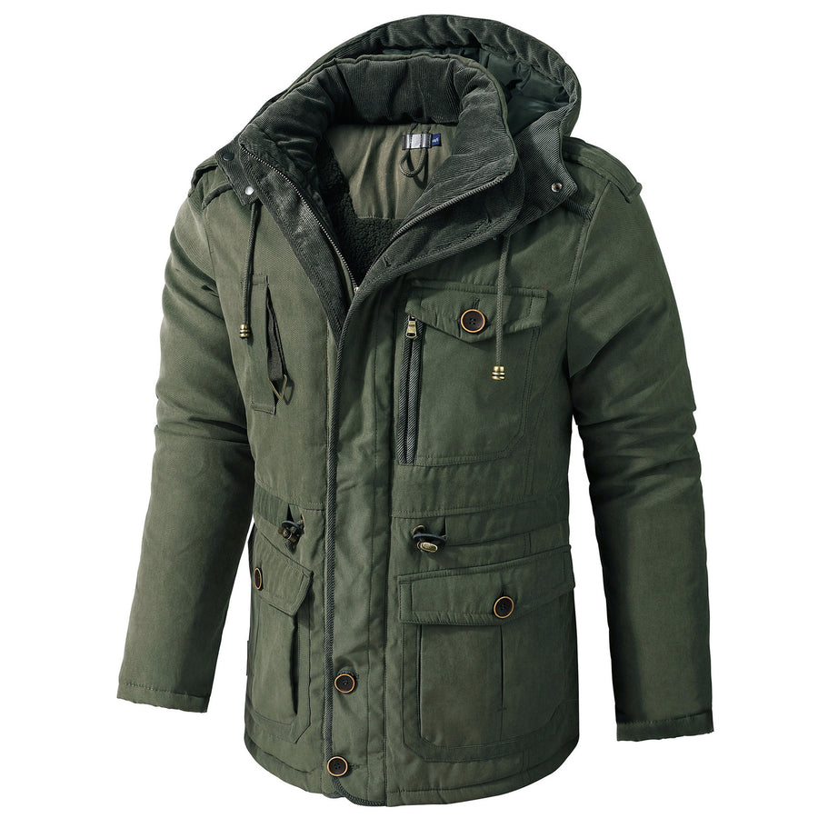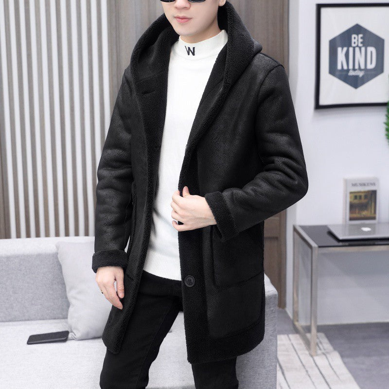 Men's Plus Size Mid-length Fleece-lined Thickened Cotton-padded Coat