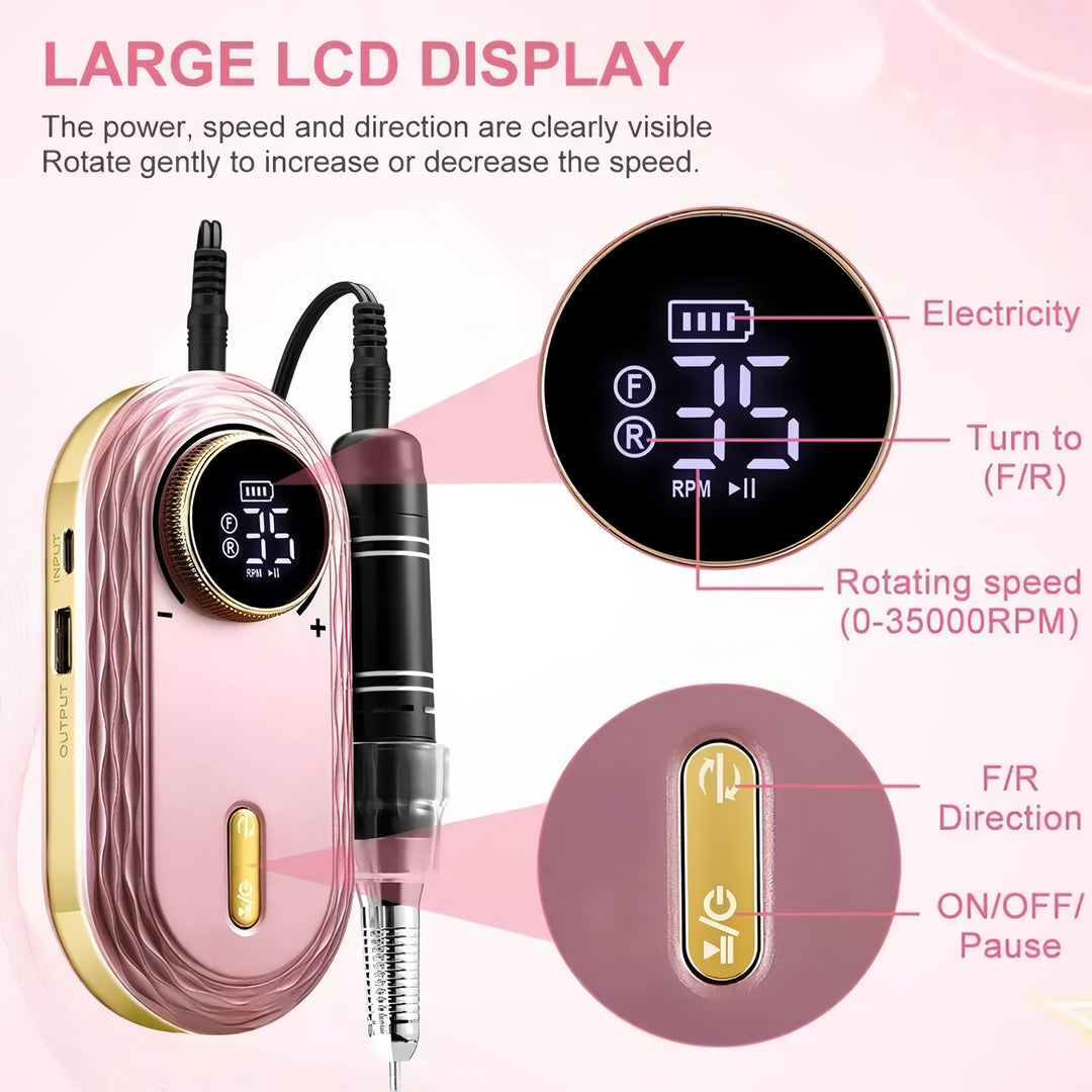 • HD Smart LCD Screen: The smart LCD screen displays speed, direction, and remaining power, providing you with all the information you need for a flawless manicure.