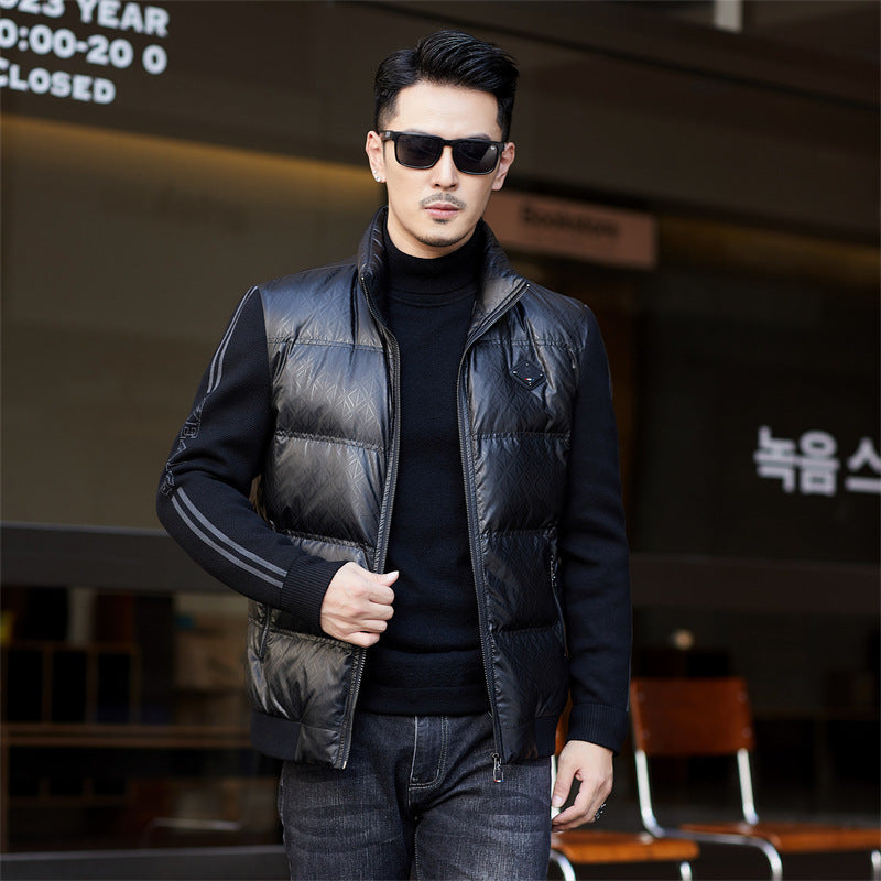 Down Jacket Men's Stand Collar Knitted Sleeve Casual Duck Down Coat