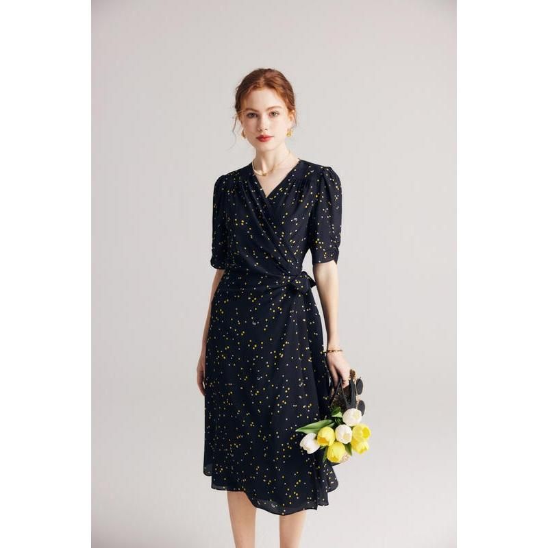 Step into a world of classic style with our Summer Elegance Black Polka Dot Silk Wrap Dress. Designed for the sophisticated woman who appreciates the finer things in life, this dress combines timeless fashion with modern comfort. Perfect for any occasion, from office meetings to evening soirees, this dress is your go-to choice for an effortlessly chic look.Luxurious Comfort and Style