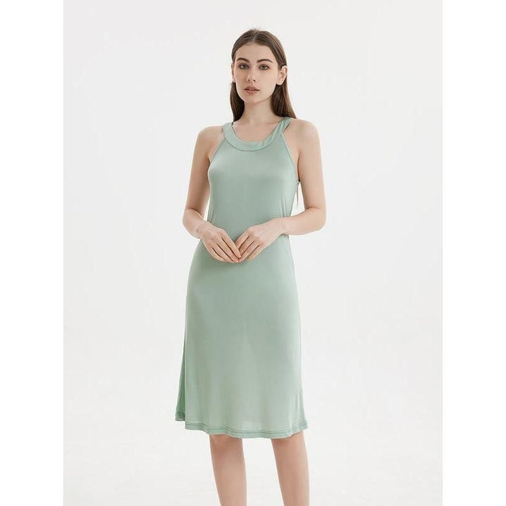 Our halterneck midi dress stands out with its straight silhouette and natural waistline, highlighting your figure gracefully. The pullover closure and H-profile type ensure ease of wear while maintaining a sleek look. Made from knitting fabric, this dress is not just about aesthetics; it's about comfort too. The absence of decoration emphasizes its simplicity and elegance, making it versatile for any setting.