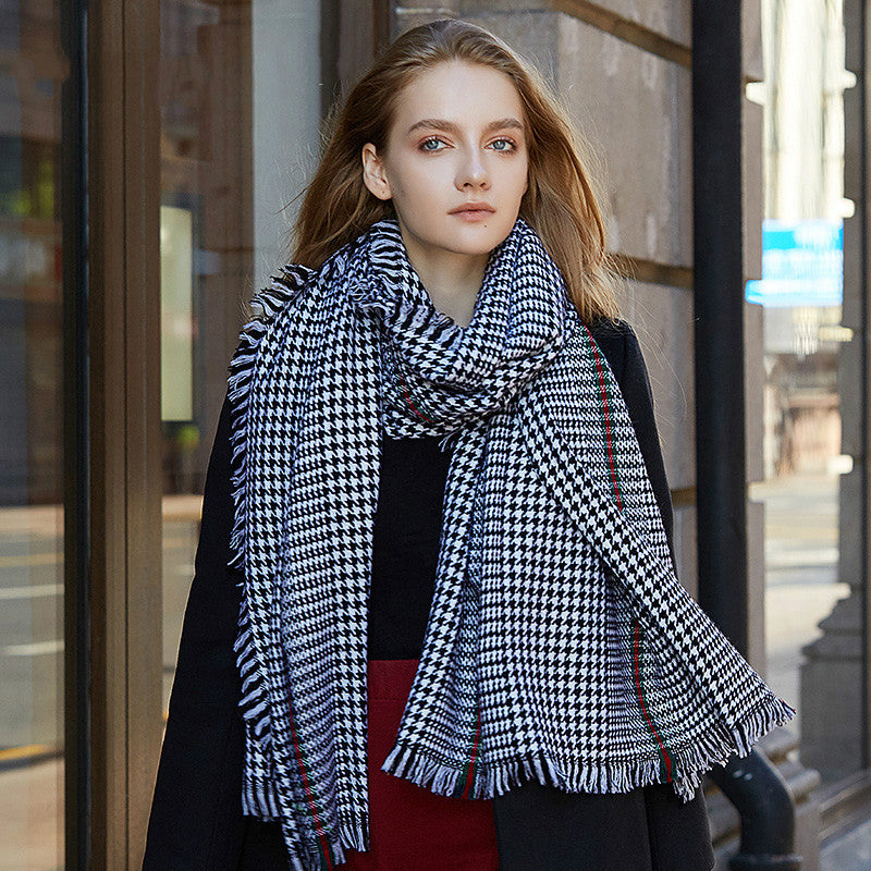 Wrap yourself in luxurious warmth with this 2023 new plaid wool scarf designed for the modern woman. Made from high-quality, real wool, this scarf offers not only unmatched warmth but also a touch of timeless elegance. Whether you're heading to a casual outing or looking to add some flair to your daily winter wardrobe, this scarf is the perfect accessory to complete any look. Its large size makes it versatile enough to wear as a poncho, shawl, or a stylish cape, making it an essential for those chilly days and nights. Crafted with a unique geometric pattern and available in rich, classic colors, this wool scarf stands out for its design and multifunctionality. It’s not just a fashion accessory—it’s a practical, cozy layer that will keep you comfortable during the coldest months. Perfect for casual outings, formal events, or simply cozying up on a cold day, this scarf is the ultimate combination of style and functionality.