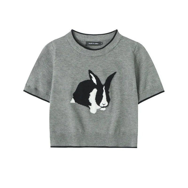 Charming Rabbit Cartoon Short Sleeve Knitted T-shirt