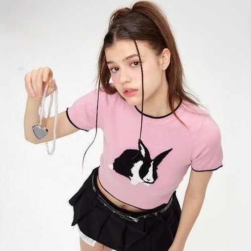 Don't miss out on the chance to add this adorable Rabbit Cartoon Short Sleeve Knitted T-shirt to your collection. Perfect for adding a touch of playfulness to your summer wardrobe, it's a piece you'll love wearing again and again. Add to cart now and step into summer with style!
