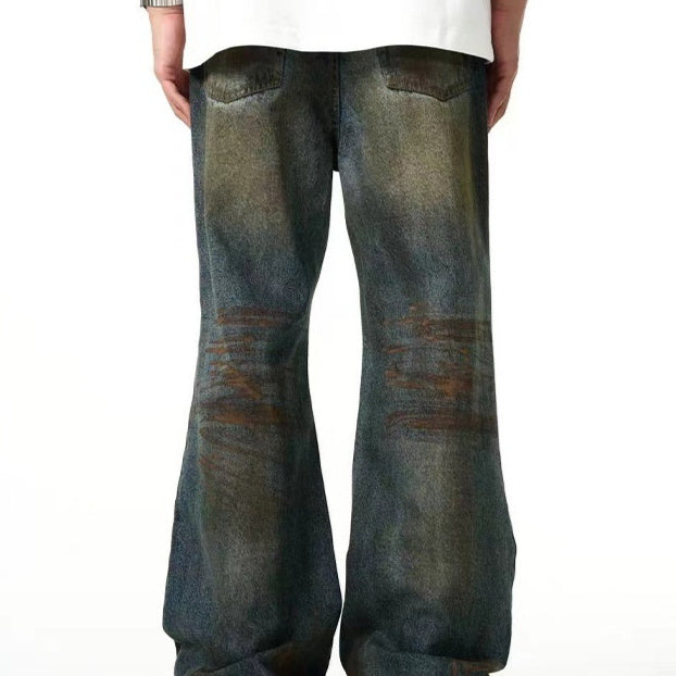 Men's Autumn American Fashion Brand Loose Yellow Mud Dyed Washed Vintage Jeans